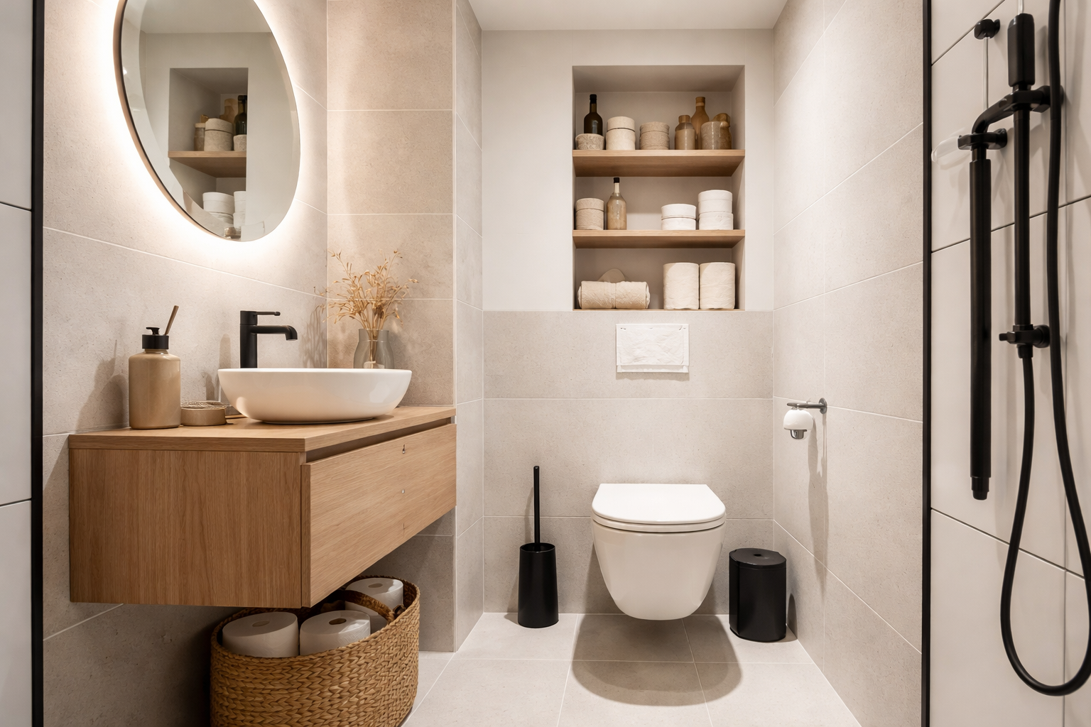 Ein Gäste-WC wirkt oft wie eine Abstellkammer, weil es bei der Planung vernachlässigt wird und schnell unordentlich aussieht. Gerade kleine Räume mit wenigen Quadratmetern werden häufig funktional, aber nicht durchdacht eingerichtet. Das führt dazu, dass sich Alltagsgegenstände stapeln und der Raum eng sowie unattraktiv wirkt. Dabei lässt sich mit wenigen gezielten Maßnahmen aus einem chaotischen Gäste-WC ein stilvoller, einladender Raum gestalten. Entscheidend sind klare Strukturen, versteckter Stauraum und eine durchdachte Gäste-WC Gestaltung.