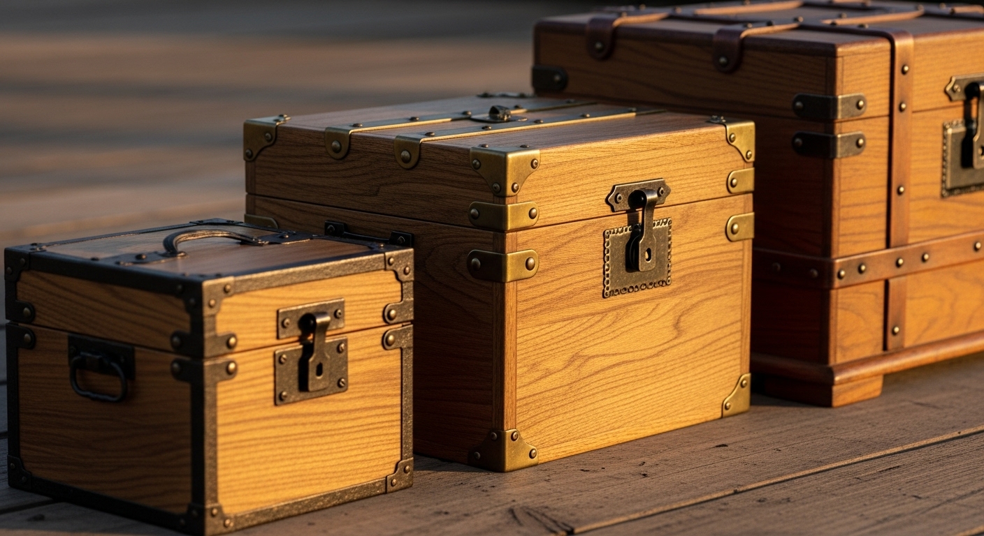 - Bauweise: Mit oder ohne Deckel, manchmal mit Schubladen.