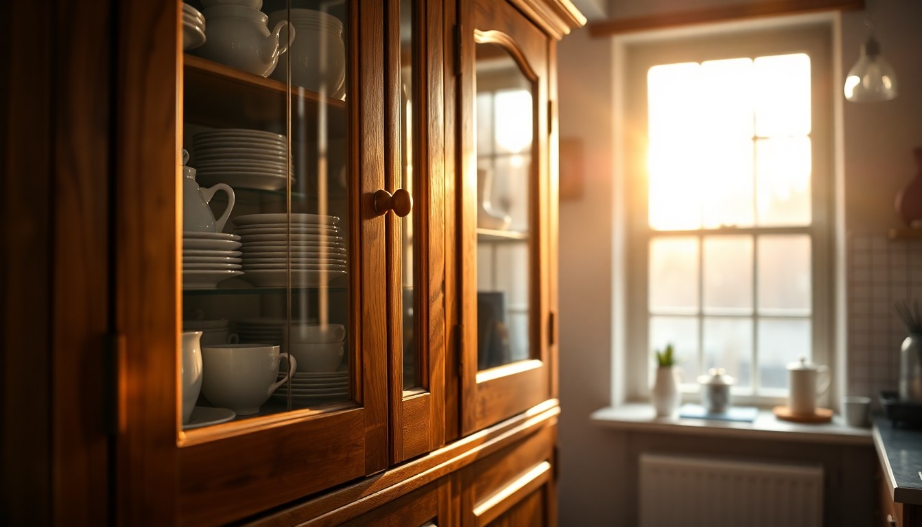Ein Geschirrschrank ist ein vielseitiges Möbelstück, das in vielen Haushalten als Vitrine oder Buffet bekannt ist. Er bietet nicht nur Stauraum für Geschirr, sondern auch eine ansprechende Präsentationsfläche. Die Materialqualität spielt eine entscheidende Rolle, wobei Massivholz und Furnier häufig verwendet werden. Diese Materialien garantieren Langlebigkeit und ein hochwertiges Erscheinungsbild.