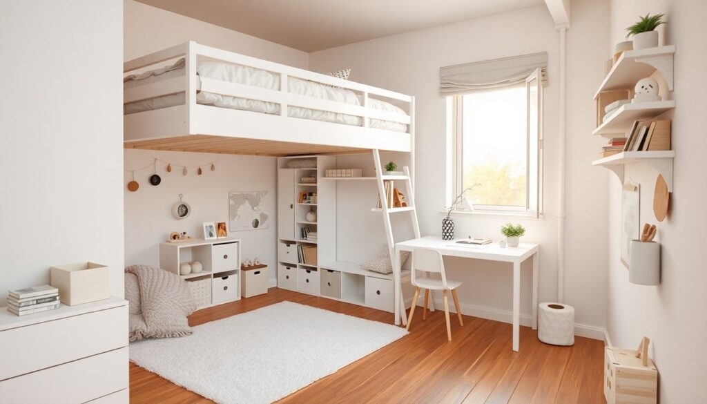 - Hochbetten schaffen wertvolle Fläche für Spielen oder Lernen.