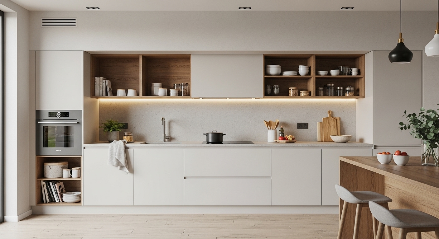 Trotz aller Vorteile gibt es Herausforderungen. Offene Regale ziehen Staub und Fett an. Der Reinigungsaufwand steigt spürbar. Auch technische Elemente müssen sauber integriert werden. Steckdosen, Abluftrohre und Anschlüsse dürfen nicht sichtbar stören.