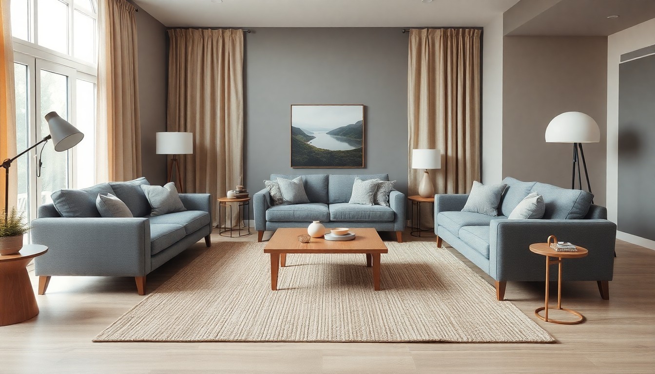 - Neutrale Farben schaffen eine ruhige Basis und lassen graue Möbel heller und größer wirken.